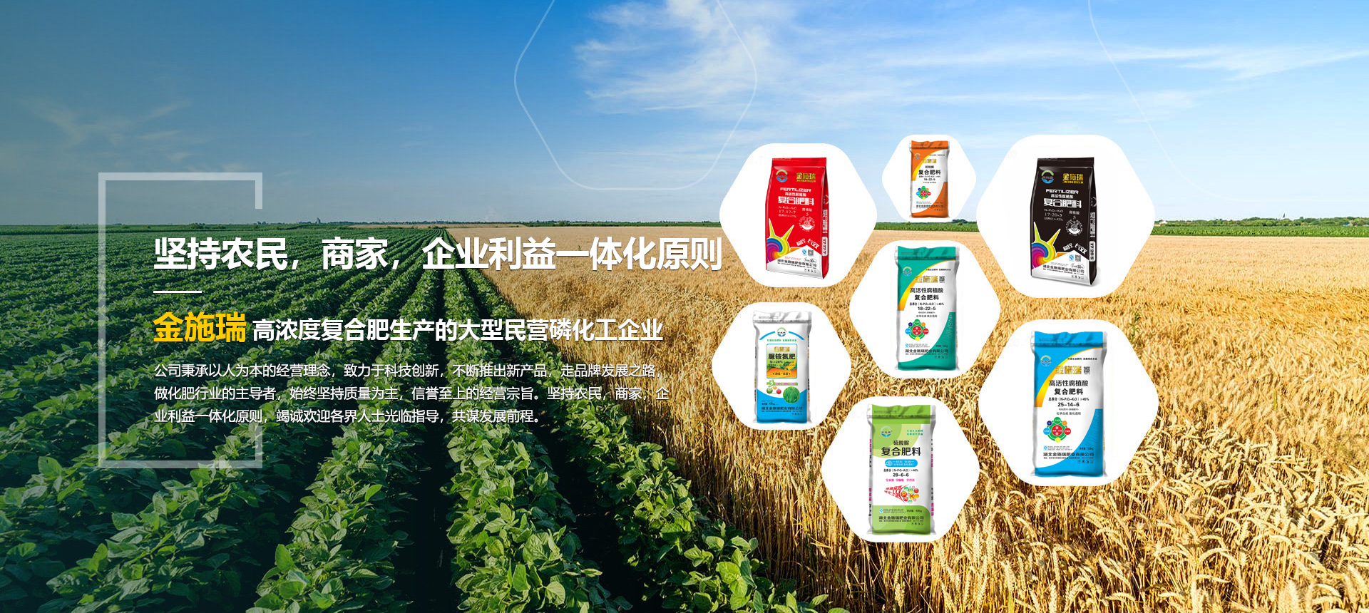 湖北金施瑞肥業(yè)有限公司是一家以生產(chǎn)高濃度復(fù)合肥為主導(dǎo)產(chǎn)品的大型民營磷化工企業(yè),在湖北、河南等地均建有大型的現(xiàn)代化生產(chǎn)基地。根據(jù)各地的土壤情況不同由本公司專業(yè)的研發(fā)機(jī)構(gòu)專門為各地區(qū)研制不同配方的化肥,真正做到測(cè)土配方施肥。